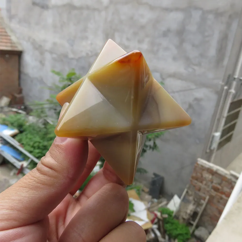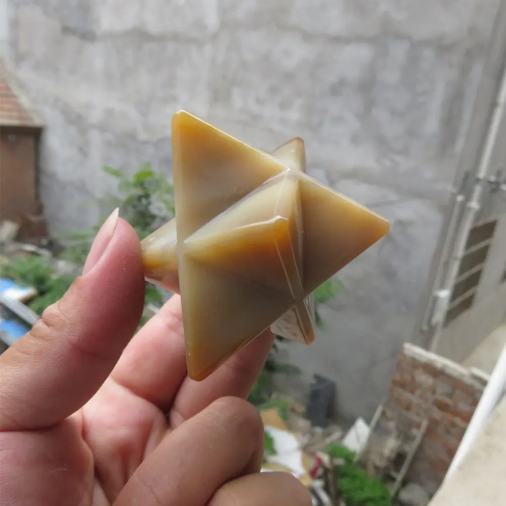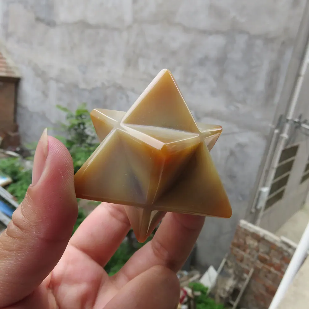 Best Seller 87g Natural Agate Stone Quartz Crystal Merkaba Star Carving for Crystal Reiki Healing Meditation Ch