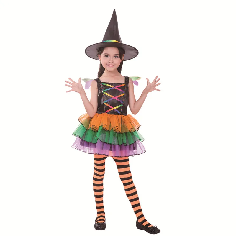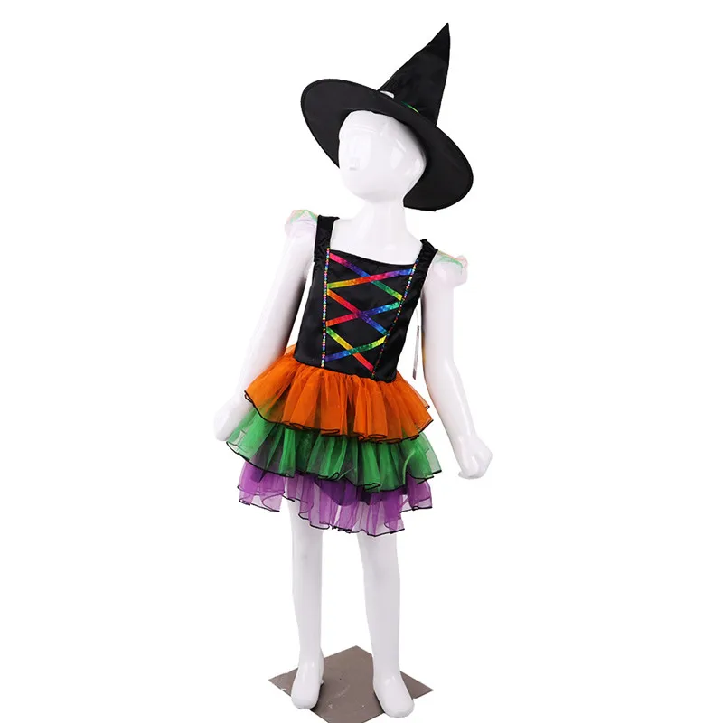 Best Princess Masquerade Dress Girl's Witch Costume Kids Witch color Dress Halloween Cosplay Party Costu