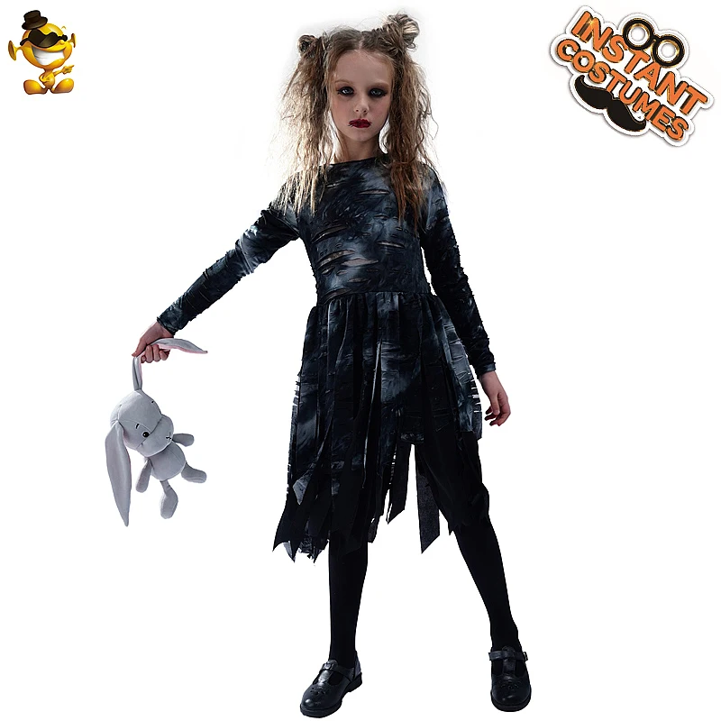 Halloween Girl Zombie Dress Costumes Performance Kids Black Ghost Zombie Dress Cosplay Clothes